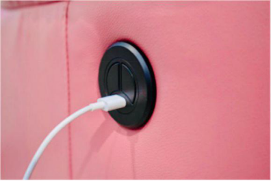而這款小沙發(fā)旁邊設(shè)置了開(kāi)關(guān)調(diào)節(jié)角度和USB充電接口,讓使用者在最方便的位置就能操控沙發(fā)的角度。