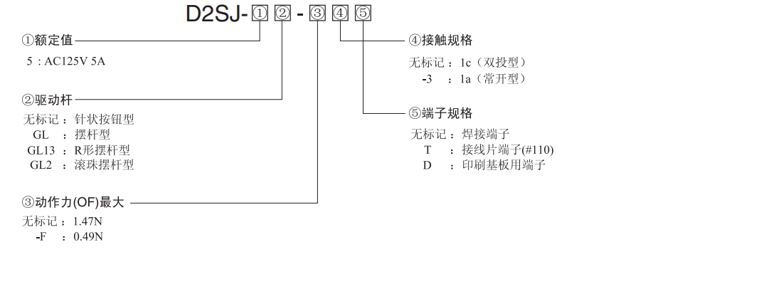歐姆龍D2SJ微動(dòng)開關(guān)構(gòu)造簡(jiǎn)單、使用方便,可與SS系列安裝互換,符合中國(guó)、北美和歐洲安全標(biāo)準(zhǔn),配有焊接端子、#110接線片端子及印刷基板端子等特點(diǎn)。